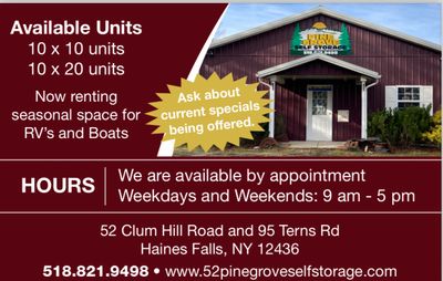 52 PINE GROVE SELF STORAGE Serving Hunter, TannersvilLe, Haines FAlls & SurroundingS